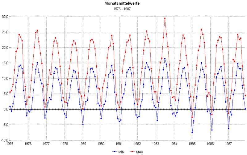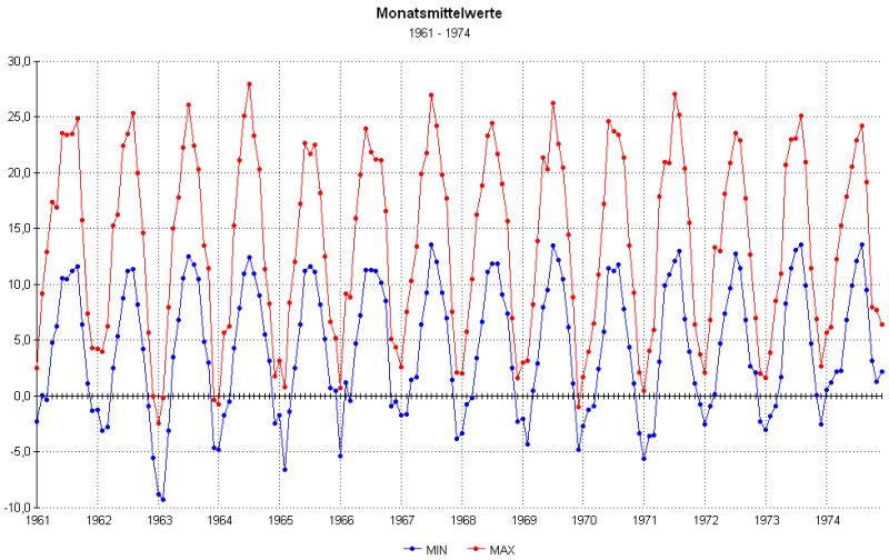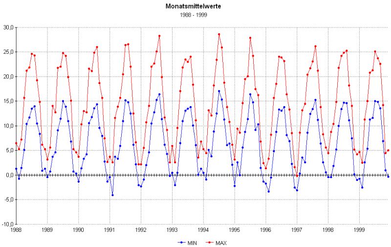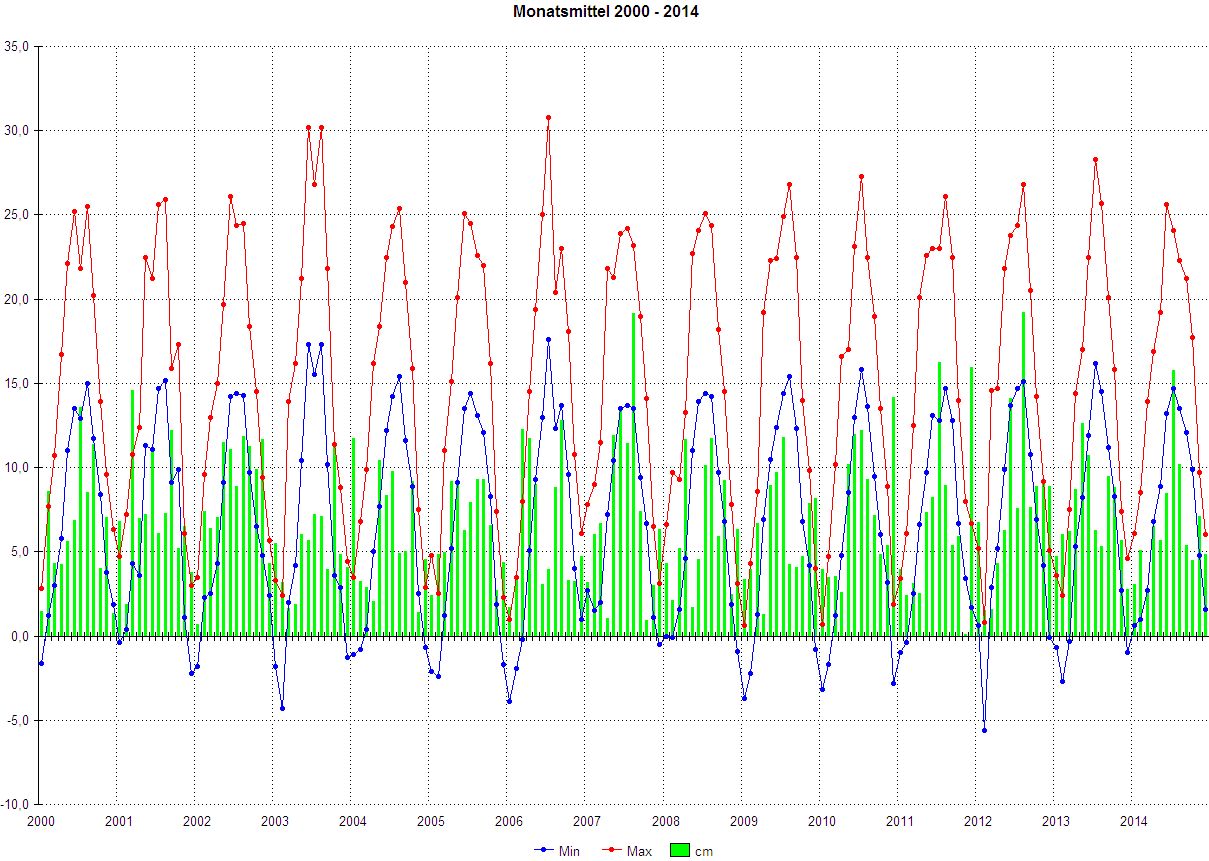 höher, die Maximaltemperaturen jedoch um 0,1 K niedriger liegen