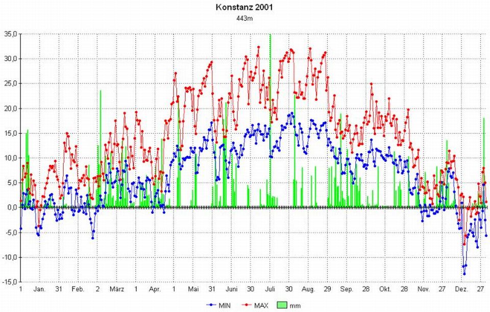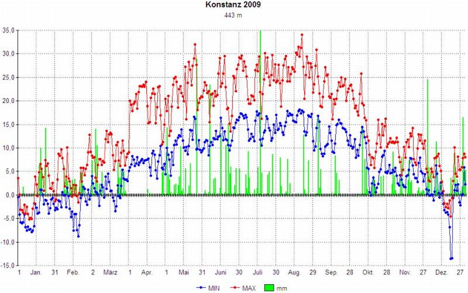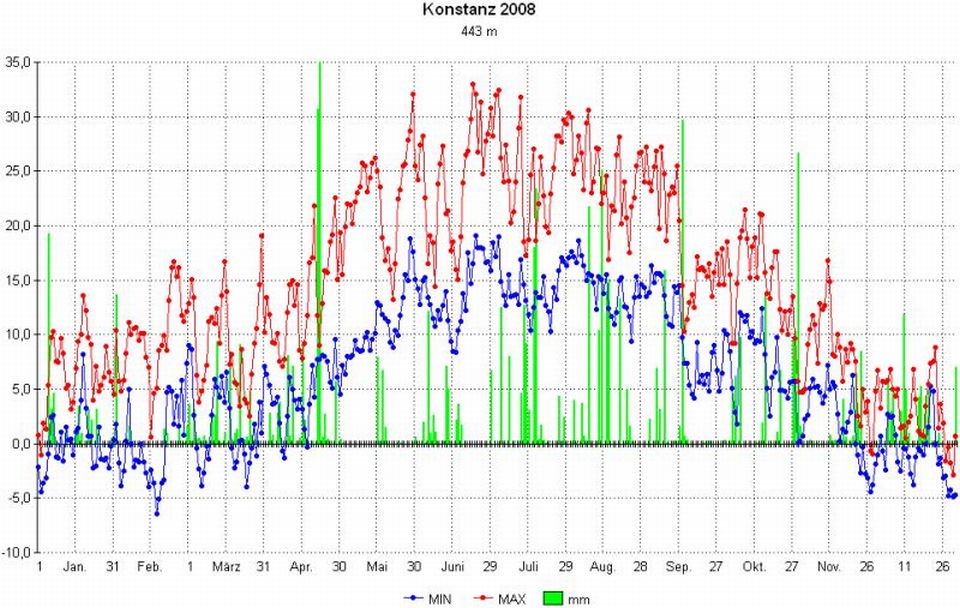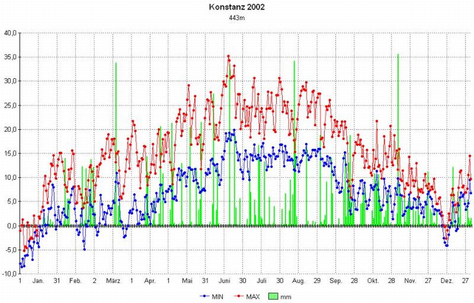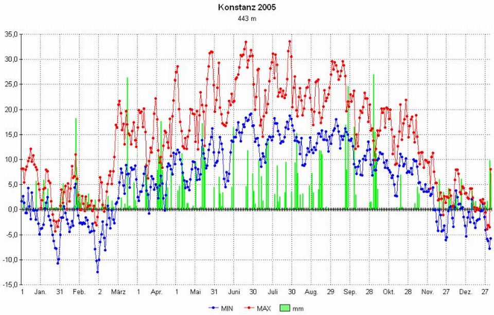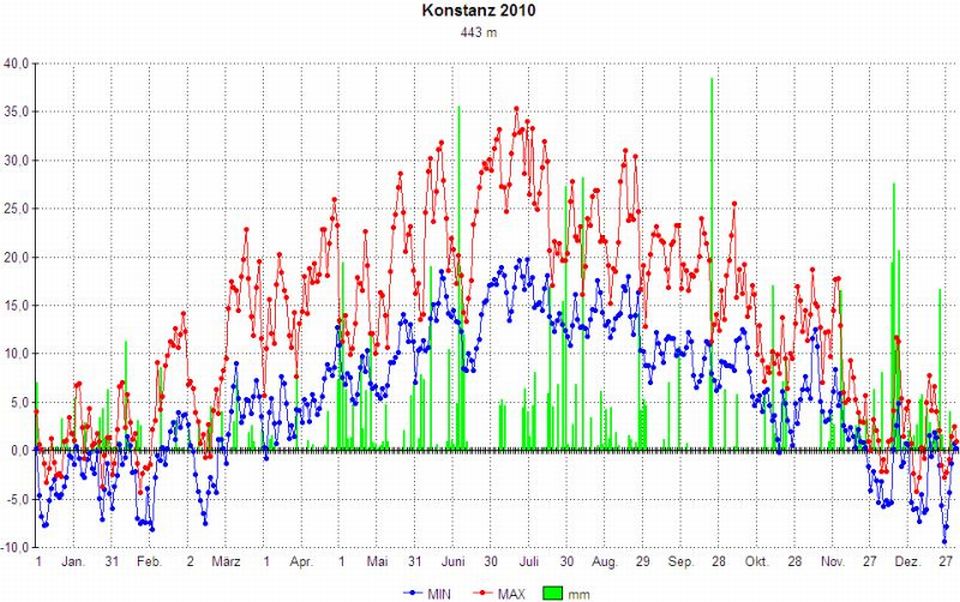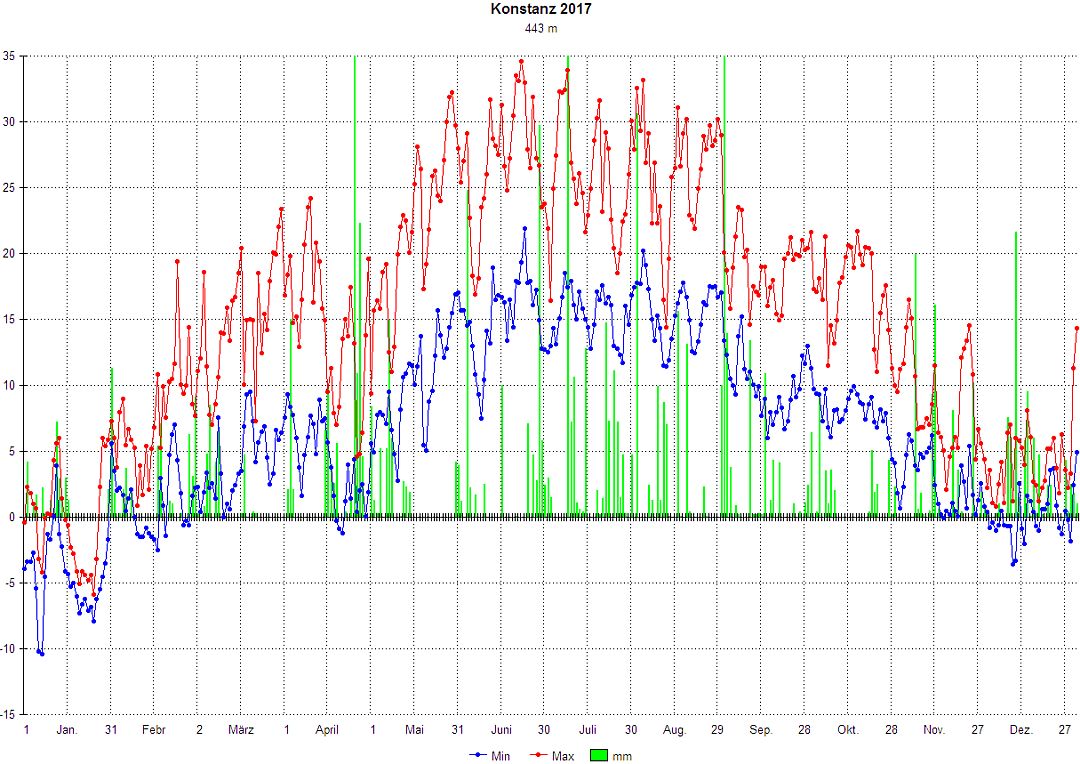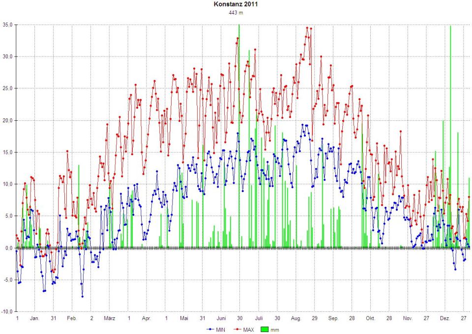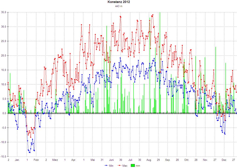 Die bisherigen genauen Daten der Wetterwarte Konstanz