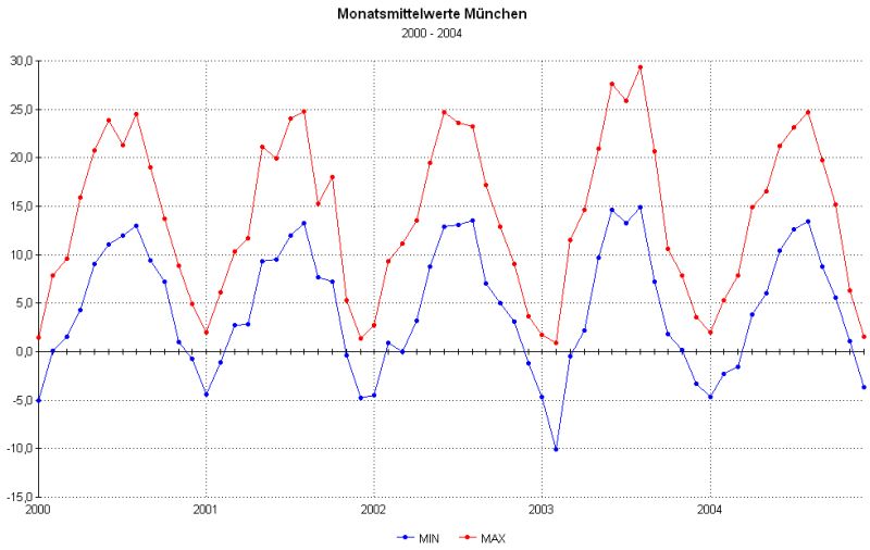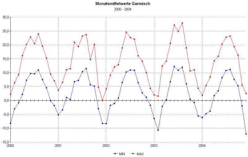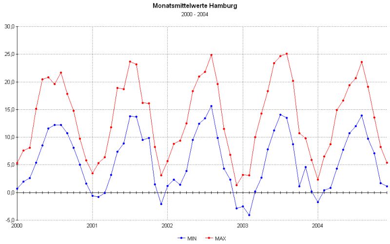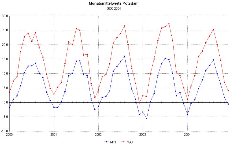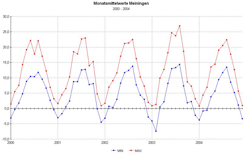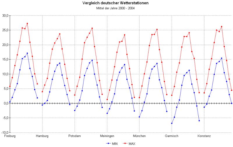 Unterschiede zwischen Tiefst- und Höchst-Temperaturen auf.