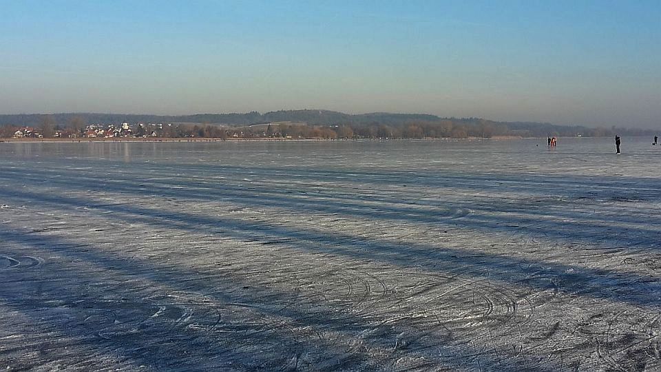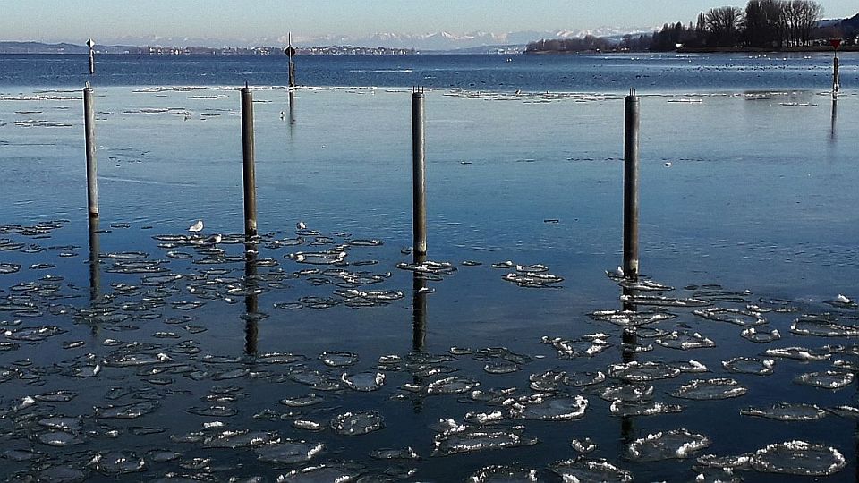 Wochen Frost lädt der See bei Radolfzell zum