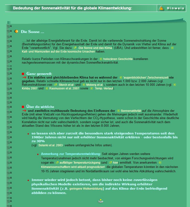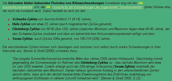 verschwiegen wird, ist die Auswirkung der Sonnenfleckenaktivität auf unser Klima. Die
